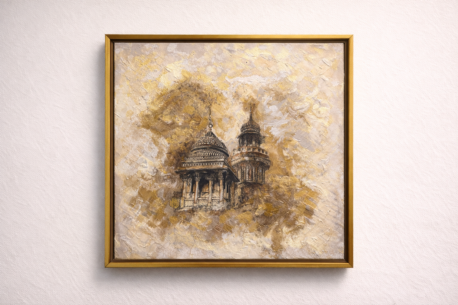 Medium: Mixed media with gold leaf on canvas Size: 18 x 18...